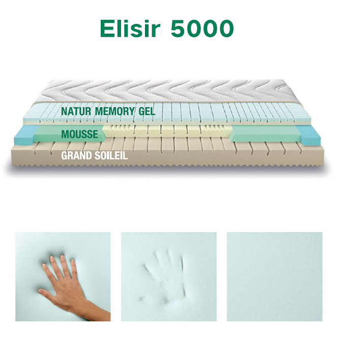 - 上层海绵厚度5cm,采用Natur Memory Gel记忆凝胶与天然Grand Soleil海绵,Natur Memory Gel记忆凝胶为天然感温材料,高度透气并可散发人体余热,缓解身体压力;天然Grand Soleil海绵具有高度支撑性与适应性,可完美贴合人体曲线