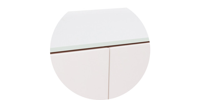 MDF base with 2 layers of ultraviolet(UV) primer and 2 layers of Italian polyurethane(PU) glossy coating in a wide range of colors. Polishing is applied to create a high sheen